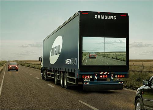 (서울=연합뉴스) 정선미 기자 = 삼성전자가 뒤차 운전자의 사고발생 위험을 줄이는 '안전 트럭(Safety Truck)'을 내놨다.