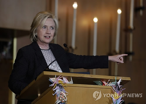 (워싱턴=연합뉴스) 신지홍 특파원 = 미국 유력 대선주자인 민주당의 힐러리 클린턴 전 국무장관이 23일(현지시간) 흑인교회 총기난사 사건을 계기로 도마 위에 오른 남부연합기 존폐 논란과 관련, "그 깃발은 어디서도 휘날려서는 안 된다"며 퇴출을 강력히 주장했다.