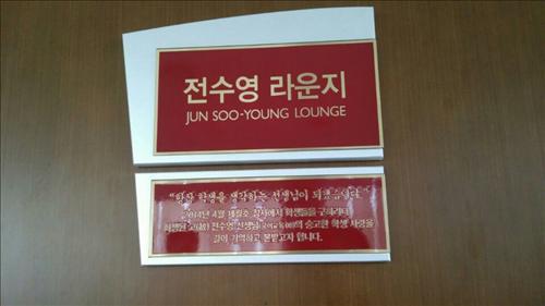 24일 고려대에 따르면 학교는 국어교육과 졸업생인 전 교사를 추모하고 희생정신을 기억하기 위해 교내 운초우선교육관 4층 입구 로비를 '전수영 라운지'로 명명하고 전날 오후 4시께 현판식을 열었다.