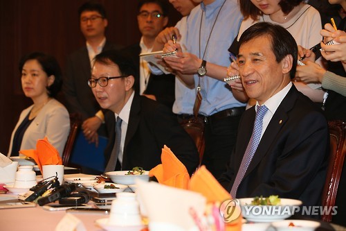| △ 모두발언 하는 이주열 한국은행 총재 (서울=연합뉴스) 박지호 기자 = 24일 오전 서울 소공동 한국은행본점에서 열린 경제동향간담회에서 이주열 한국은행 총재가 모두발언을 하고 있다. |