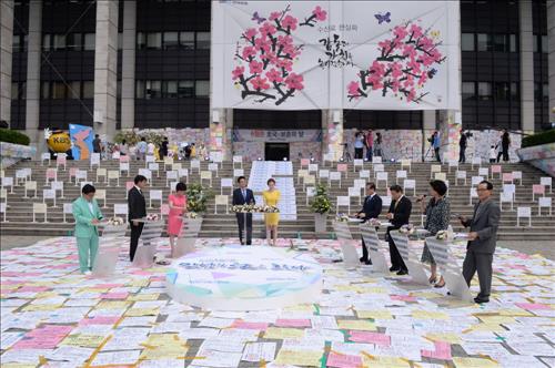 여의도 KBS본관 계단과 벽면 8천여장의 사연판으로 꾸며져