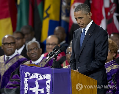 오바마 대통령은 이날 오후 존 바이든 부통령, 부인 미셸 여사와 함께 사우스캐롤라이나 주 찰스턴의 유서깊은 흑인교회인 이매뉴얼 아프리칸 감리교회를 찾았다.