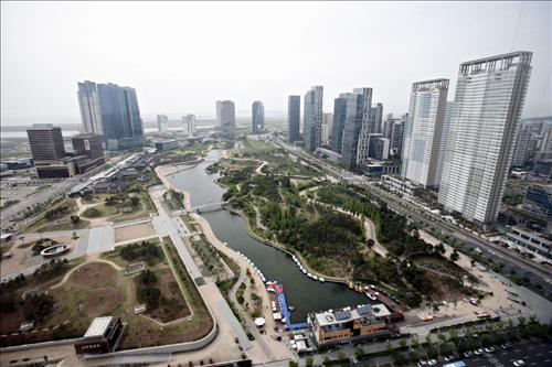 송도 국제업무단지와 주거단지를 가로지르는 '중앙공원'(센트럴파크)은 바닷물을 끌어들여 조성한 해수공원이다. 국내에서는 처음 적용된 방식이다.