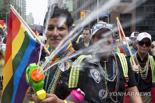 (샌프란시스코=연합뉴스) 임화섭 특파원 = 미국 대법원이 동성 결혼을 전면적으로 인정하는 역사적 판결을 내리고서, 첫 일요일인 28일(현지시간) 전 세계의 주요 도시들에서 '게이 프라이드'(동성애자의 자긍심) 행진이 열렸다.