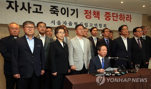 (서울=연합뉴스) 김용래 기자 = 서울시교육청이 자율형 사립고 4개교를 지정취소 청문 대상으로 결정한 것에 대해 자사고들이 집단으로 반발하고 나섰다.