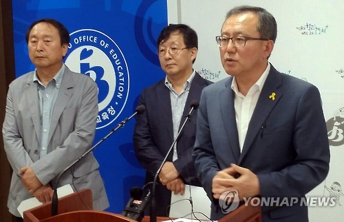 | △ "익산 남성고·군산중앙고 '자사고' 자격 5년 연장" (전주=연합뉴스) 최영수 기자 = 전북도교육청의 자사고 운영성과 평가단이 30일 기자회견을 열어 "남성고와 군산중앙고가 지정 취소의 판단기준인 60점 이상으로 평가돼 두 학교가 자사고 지위를 유지하게 된다"고 발표하고 있다. 2015.6.30 kan@yna.co.kr |