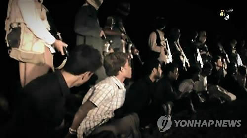 | △ IS 예멘지부, 첫 참수·총살 동영상 공개 (서울=연합뉴스) 예멘에 진출하기 시작한 수니파 무장조직 '이슬람 국가(IS)' 예멘 지부를 자처하는 무장조직이 지난 1일(현지시간) 처음으로 포로를 살해하는 동영상을 공개했다. 사진은 캡처된 공개 동영상. 2015.5.3 photo@yna.co.kr |