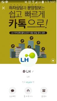 카카오톡 기반의 서비스는 공기업 최초로 시도되는 것이다. 카카오톡 플러스친구에서 'LH'를 검색한 후 친구로 등록하면 해당 서비스를 이용할 수 있다.