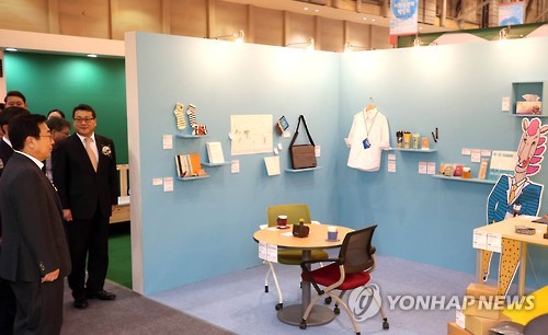 | △ (부산=연합뉴스) 조정호 기자 = 3일 부산시 해운대구 벡스코에서 열린 '사회적기업 박람회'에서 서병수 시장 등이 사회적기업 제품을 소개하는 라이프스타일관을 살펴보고 있다. 5일까지 열리는 전시행사에는 전국에 있는 사회적 기업, 협동조합, 마을기업 등 200여 곳이 참가했다. 2015.7.3 ccho@yna.co.kr |