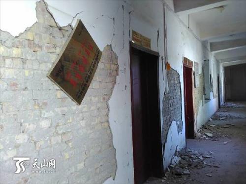 | △ 3일 발생한 신장 지진으로 피해 입은 건물 <중국 천산망 사진 캡처> |