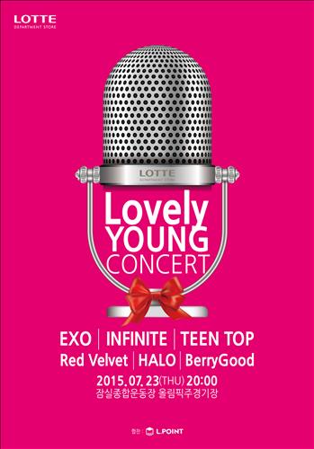 5일 롯데백화점에 따르면 이번 '러블리 영 콘서트(Lovely Young Concert)'에서는 엑소(EXO), 인피니트(INFINITE), 레드벨벳(Red Velvet), 틴탑(TEEN TOP), 헤일로(HALO), 베리굿(BerryGood) 등 인기 아이돌 그룹 여섯 팀이 공연할 예정이다.