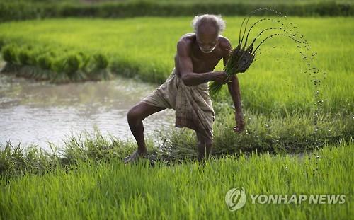 | △ 3일(현지시간) 인도 북동부 아삼 주 레바 마헤스와르 마을에서 한 농부가 일하고 있다.(AP=연합뉴스) |