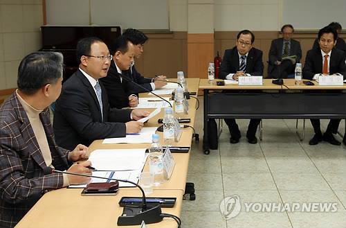 | △ 작년 10월 청주시청에서 열린 청주산업단지 관련 정책간담회. 이 자리에서는 대농지구 내 지웰시티 3차 아파트 건립 문제가 집중 논의됐다. <<연합뉴스 DB>> |