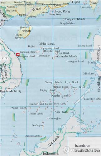 | △ 중국이 남중국해 영유권 구분의 기준선으로 제시한 '남해구단선(南海九段線·nine dash line)'. 구단선은 남중국해 주변을 따라 그은 9개의 직선이다. 이를 이으면 알파벳 U자 모양이어서 'U형선(形線)'이라고도 부른다. (연합뉴스 자료사진) |