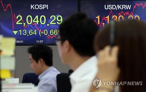 7일 한국의 코스피지수는 전날보다 0.66% 밀린 2,040.29에 거래를 마쳤다. 코스닥시장이 2.97% 급락하면서 코스피를 끌어내렸다.
