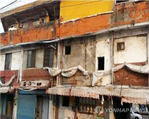 | △ "언제 붕괴할 지 모른다" 인천 재흥시장 대책 '시급' (인천=연합뉴스) 인천 남구청은 주안동 재흥시장 건물(1천59㎡ 지상 3층)이 지난 4월 시행한 대한산업안전협회 안전진단결과에서 최하위 등급인 'E' 등급을 받았다고 8일 밝혔다. 관련법에 따르면 E 등급 건물은 재난위험 시설로 분류돼 사용을 즉각 금지해야 한다. 현재 상점은 없지만 3층에 29가구 61명의 주민이 거주하고 있다. 사진은 재흥시장 건물 모습. 2015.7.8 << 인천 남구청 제공 >> |