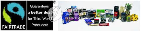 | △ '공정무역재단'에서 공정무역으로 생산된 제품에 붙이는 공정무역 마크와 공정무역으로 생산된 제품들(연합뉴스DB) |