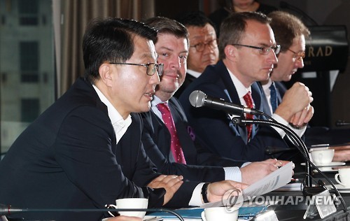 이날 간담회에는 필립 누와르 BNP파리바은행 대표, 임동수 CLSA 증권 대표, 마이클 리드 피델리티 자산운용 대표, 이영호 ACE생명보험 대표, 스티브 바넷 AIG손해보험 대표 등 외국계 금융사 CEO 22명이 참석했다.