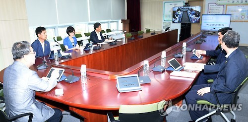 | △ 경기교육청 메르스 대책본부 운영 종료 (수원=연합뉴스) 경기도교육청은 9일 화상으로 학교안전회의를 열어 중동호흡기증후군(메르스) 비상대책본부와 상황실 운영을 10일 오후 6시에 종료하기로 결정했다. 회의에서는 또 각 학교의 안전점검 활동에 학생들이 직접 참여하는 방식을 도입하기로 했다. 2015.7.9 <<경기도교육청>> ktkim@yna.co.kr |