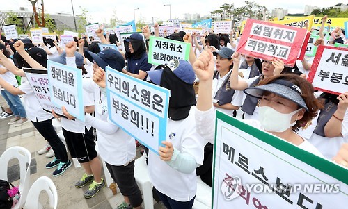 | △ 특수목적고 지정취소 결정이 내려진 서울외국어고등학교 학부모 및 동문들이 8일 오전 정부세종청사 교육부 앞에서 집회를 열고 "교육부는 서울시교육청의 특수목적고 지정 취소 결정에 부동의 해야한다"며 집회를 열고 있다. |