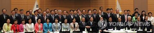 | △ 총회를 마치고 사진 촬영에 응하는 한국과 일본 국회의원 |