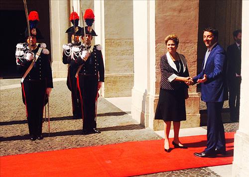 | △ 지우마 호세프 브라질 대통령과 마테오 렌치 이탈리아 총리가 10일(현지시간) 정상회담에 앞서 악수하고 있다.(출처:브라질 일간지 폴랴 지 상파울루) |
