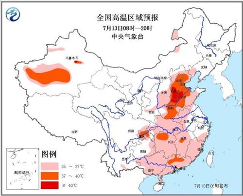 중앙기상대는 13∼14일에도 화베이, 황화이 등 전국 곳곳이 35∼37℃를 기록할 것이라면서 이중 일부 지역은 39∼40℃까지 올라갈 것으로 예보했다.