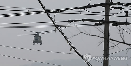 | △ 영평사격장 밖 민간 지역 상공에서 CH-47 치누크 헬기가 저공비행하는 모습. (연합뉴스 자료사진) |