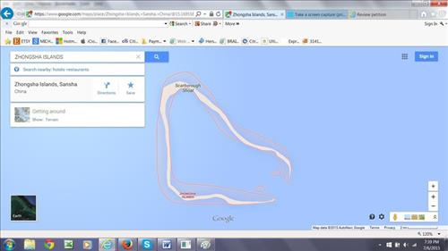 | △ 스카버러섬이 중국 중사 군도의 일부로 나타난 구글 지도 |