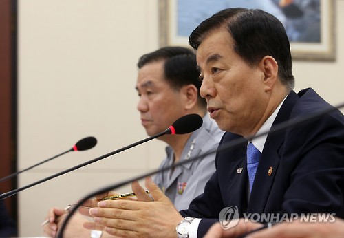 | △ 답변하는 국방부 장관 (서울=연합뉴스) 도광환 기자 = 14일 오후 국회에서 열린 국방위원회에서 한민구 국방부 장관이 의원 질의에 답변하고 있다. 왼쪽은 조현천 기무사령관. |