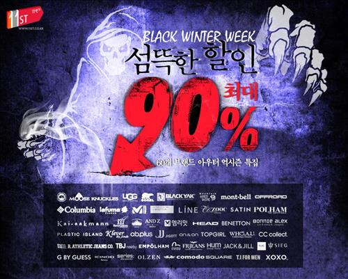 (서울=연합뉴스) 이도연 기자 = 11번가는 오는 26일까지 '블랙 윈터 위크, 섬뜩한 할인' 행사를 열고 60여개 브랜드의 겨울 제품 300여종을 최대 90% 할인 판매한다고 15일 밝혔다.