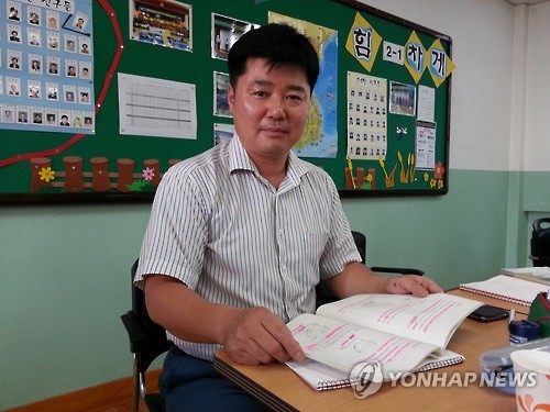 | △ 늦깎이 중학생 우종필씨 (대구=연합뉴스) 한무선 기자 = 대구내일학교 중학과정에 다니는 수제화 명인 우종필씨가 교실에서 책을 펼쳐보이고 있다. 2015.7.15 mshan@yna.co.kr |