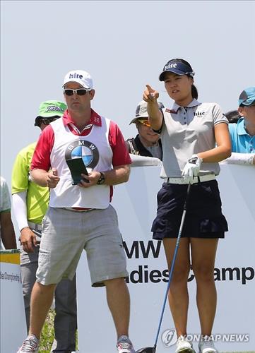 (인천=연합뉴스) 권훈 기자 = 미국여자프로골프(LPGA)투어 메이저대회 US여자오픈을 제패하고 귀국한 '월드스타' 전인지(21·하이트진로)가 한국여자프로골프(KLPGA)투어 최고 상금 대회 BMW챔피언십 1라운드에서 시차에 따른 컨디션 난조 속에 중위권에 그쳤다.