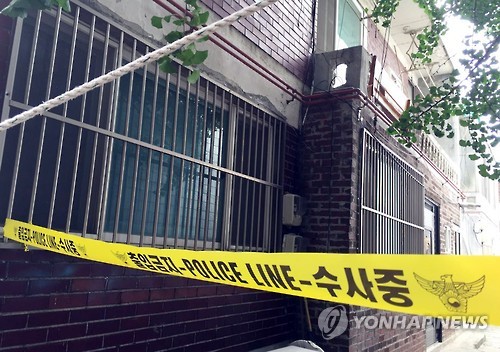 | △ 이웃 간 칼부림 일어난 부천 연립빌라 (부천=연합뉴스) 손현규 기자 = 17일 경기도 부천에서 한밤중 윗집 남성이 아래층에 사는 이웃집 모자(母子)를 흉기로 찌르고 도주해 1명이 숨지고 1명은 중태에 빠졌다. 사진은 범행이 발생한 경기도 부천시 원미구의 한 연립주택. 이 연립주택은 2층짜리 건물로 한 층에 3가구씩 거주하고 있다. 2015.7.17 son@yna.co.kr |