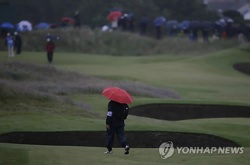 영국 스코틀랜드 세인트 앤드루스 골프장 올드코스(파 72·7천297야드)에서 막을 올린 제144회 브리티시오픈 골프대회 이틀째인 17일 오전(현지시간) 강한 비로 경기가 중단됐다.