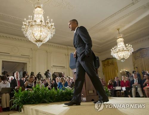 | △ 지난 15일 이란 핵협상 타결관련 기자회견 후 연단을 떠나는 버락 오바마 미국 대통령.(AP=연합뉴스) |