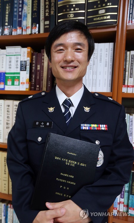 한 동료 직원은 "어느 날 윤 경위가 논문이 나왔다며 제본된 두꺼운 박사 논문을 하나 보여주기에 장난치는 줄 알았다"며 "워낙 일을 열심히 하고 성실하게 근무하는 직원이기 때문에 박사학위를 받았다는 소식을 듣고 언제 짬을 내 공부를 했는지 신기할 정도였다"고 말했다.