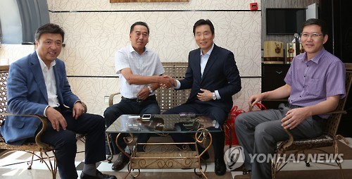 | △ 연합뉴스, 동북 3성 동포 언론과 교류 협력에 나선다 (하얼빈=연합뉴스) 강성철 기자 = 연합뉴스 심수화 마케팅담당 상무는 18일까지 중국 동북 3성 하얼빈(哈爾濱)의 조선족 언론인 흑룡강 신문사를 방문해 뉴스 콘텐츠 교류 등 다양한 협력 방안을 논의했다. 왼쪽부터 김영근 재외동포재단 사업이사, 한광천 흑룡강신문사 사장, 연합뉴스 심수화 마케팅담당 상무, 박자림 흑룡강신문사 부사장. 2015.7.18 wakaru@yna.co.kr |
