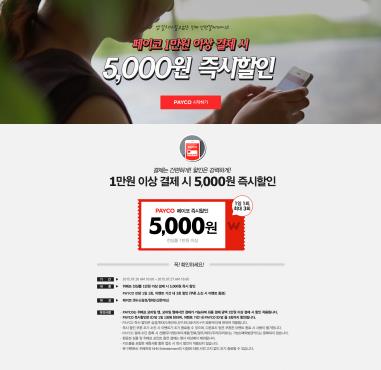 이번 할인 이벤트는 페이코 간편결제 수단으로 하나·외환·삼성·현대·신한 카드를 이용할 때만 적용된다. 하루에 한 번 5천원씩, 총 3회까지 이벤트에 참여할 수 있어 이용자들은 총 1만5천원의 할인혜택을 누릴 수 있다.
