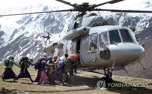 | △ 올해 5월 5일 네팔에서 지진 구호활동 중인 인도공군 소속 Mi-17 V5 헬기(EPA=연합뉴스 자료사진) |