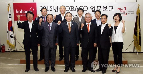 | △ 최성준 방통위원장, 한국방송광고진흥공사 방문 (서울=연합뉴스) 최성준 방송통신위원장(앞줄 왼쪽 세 번째)이 23일 서울 중구 한국방송광고진흥공사(코바코)를 방문, 하반기 업무계획을 점검하고 임직원 격려 및 애로사항을 청취한 후 관계자들과 기념촬영을 하고 있다. 2015.7.23 << 한국방송광고진흥공사(KOBACO) 제공 >> photo@yna.co.kr |