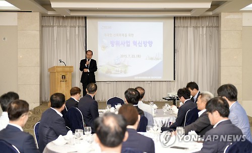 장명진 방위사업청장은 23일 경북 구미와 경남 창원에서 각각 열린 중소·대형 방산업체 간담회에서 최근 진행 중인 방위사업비리 정부합동수사와 관련한 '방위사업 혁신 대책'을 발표했다.