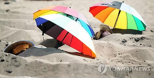 | △ 삼양 검은모래해변 모래찜질 << 연합뉴스DB >> |