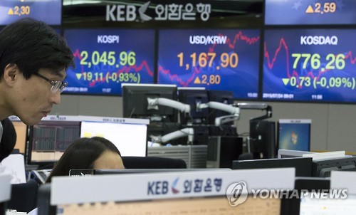 이날 코스피는 19.11포인트(0.93%) 내린 2,045.96으로 마감했다.