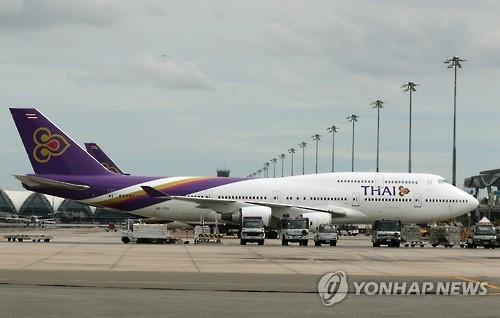 | △ 태국 타이항공기가 방콕 수완나품 공항에 정거해있다.(EPA=연합뉴스 자료사진) |