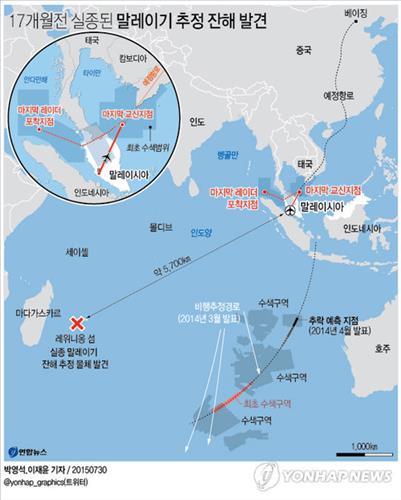 (서울=연합뉴스) 고미혜 기자 = 지난해 3월 실종된 말레이시아항공 여객기의 잔해로 추정되는 물체가 실종 17개월 만에 추락 예상 지점에서 5천㎞ 가까이 떨어진 아프리카 동부지역에서 발견되면서 이동경로에 관심이 쏠리고 있다.