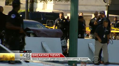 미국 의회 경찰과 CBS등 언론들에 따르면 이날 오전 9시 40분께 자주색 승용차 1대가 빠른 속도로 남쪽 검문소 앞 도로로 진입한 뒤 속도를 줄이지 않고 그대로 바리크에드와 충돌했다.