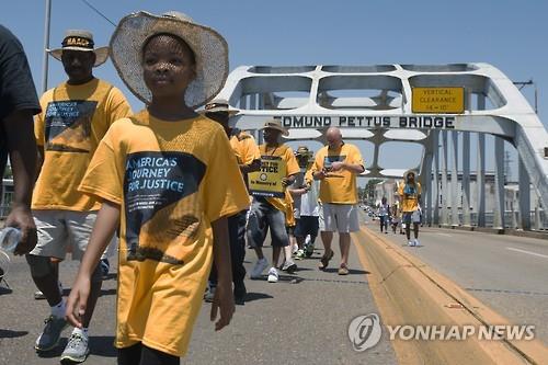 최근 미국에서 백인 경관의 비무장 흑인 총격, 남부연합기 논란 등으로 인종 갈등이 계속되는 가운데 흑인 참정권 운동의 상징인 '셀마 행진'이 50년 만에 재연된다.