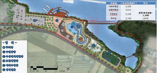 수변광장은 문화공연 활동과 수상레저 체험 시설, 산책로 등이 계절에 따라 가변적인 공간으로 조성된다.