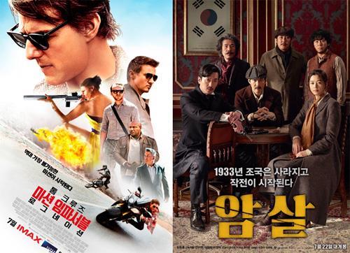 (서울=연합뉴스) 홍국기 기자 = 할리우드 인기 시리즈 영화 '미션 임파서블: 로그네이션'(이하 '미션 임파서블 5')과 한국영화 '암살'이 지난 주말 극장가를 석권했다.